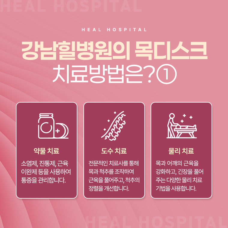 강남힐병원은 환자분들의 건강한 경추를 위해서 치료를 제공과 진료 체계로 언제든 진료받을 수 있게 운영하고 있습니다. 건강한 목과 일상생활을 위해서 지금부터 관리해보시길 바랍니다. 감사합니다.